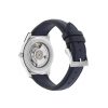 - Steel case, blue guilloché dial, interchangeable blue leather strap