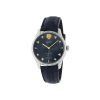 - Steel case, blue guilloché dial, interchangeable blue leather strap