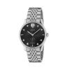 - Steel case, black guilloché dial with small second hand, 7 links steel bracelet