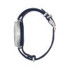 - Steel case, dark blue sun-brushed dial, blue-red-blue web nylon strap