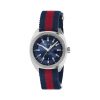 - Steel case, dark blue sun-brushed dial, blue-red-blue web nylon strap