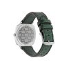 - Steel case, 3 windows indicating hour, minute & date, green alligator strap