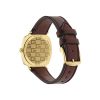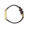 - Yellow gold PVD case, 3 windows indicating hour, minute & date, bordeaux leather strap