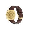 - Yellow gold PVD case, 3 windows indicating hour, minute & date, bordeaux leather strap