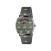 - Steel case and bracelet with engraved GG and pink superluminova enamel, 3 pink disks indicating hours, minutes and date