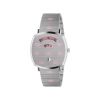 - Steel case and bracelet with engraved GG and pink superluminova enamel, 3 pink disks indicating hours, minutes and date