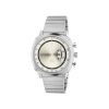 - Steel case, 2 windows indicating hour and minute and chronograph function, steel bracelet