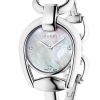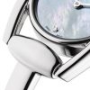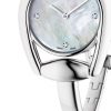- Steel case, white mother of pearl dial set with 3 diamonds, steel bangle