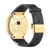 - Yellow gold PVD case, black dial yellow digits or hands, black GG rubber strap