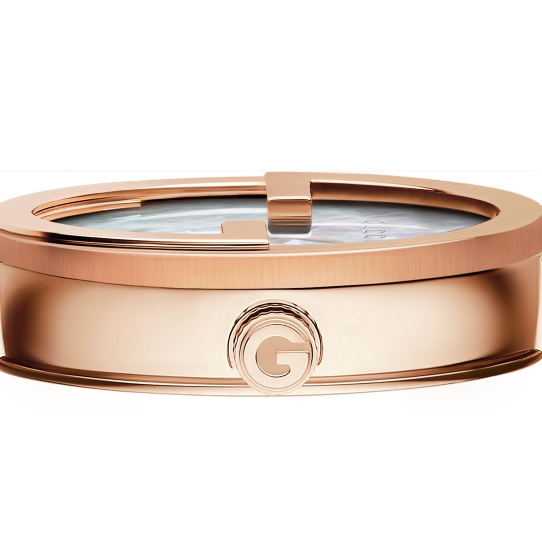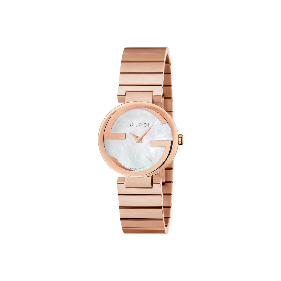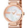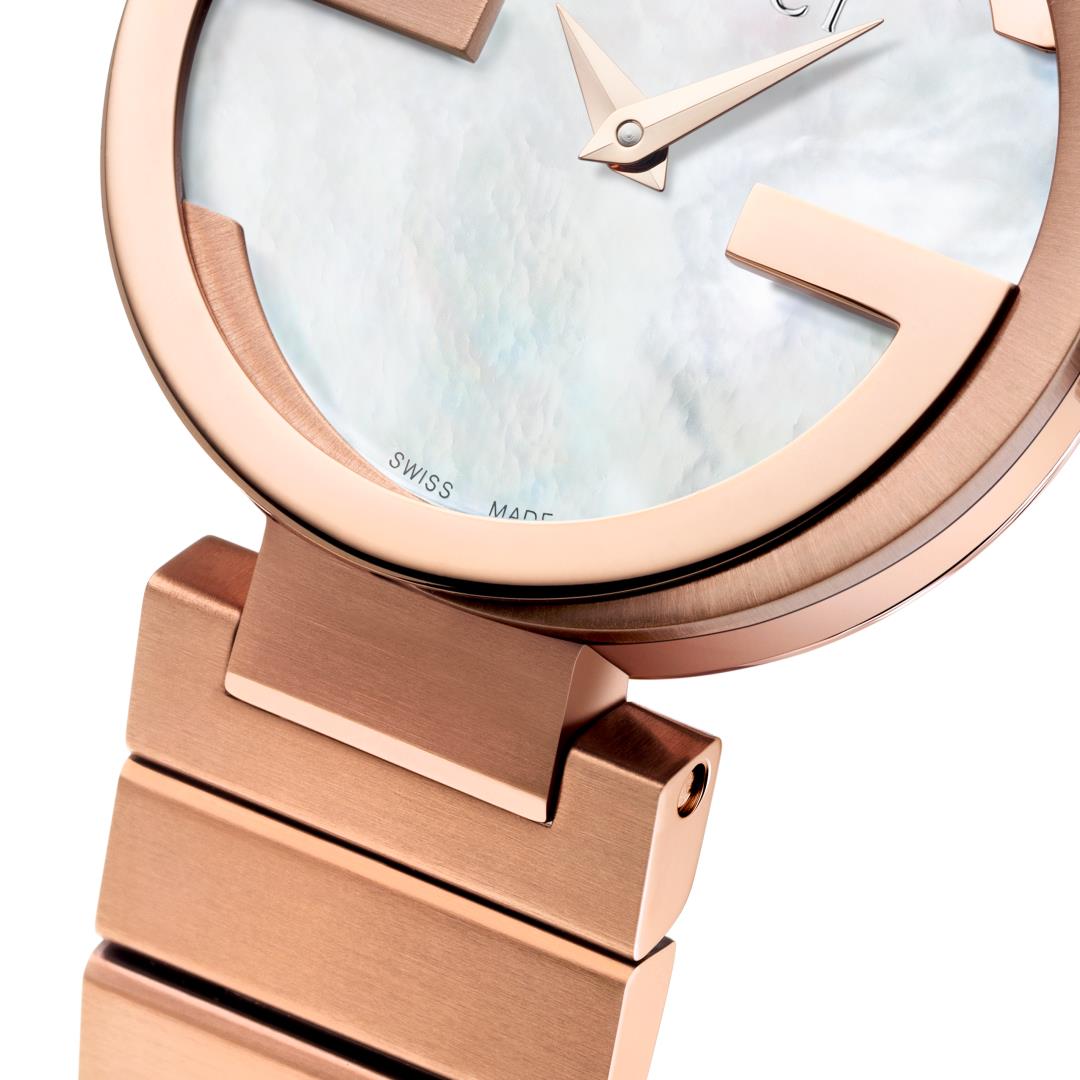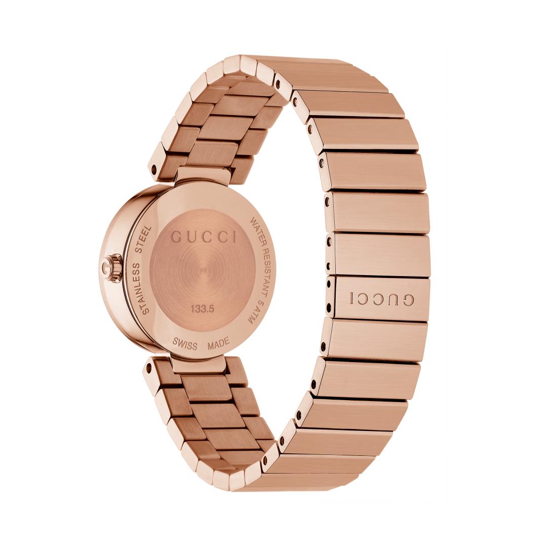 - Pink gold PVD case, white mother of pearl dial, pink gold PVD bracelet