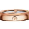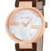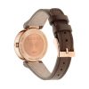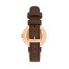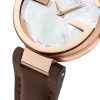 - Pink gold PVD case, white mother of pearl dial, brown leather strap