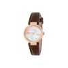 - Pink gold PVD case, white mother of pearl dial, brown leather strap
