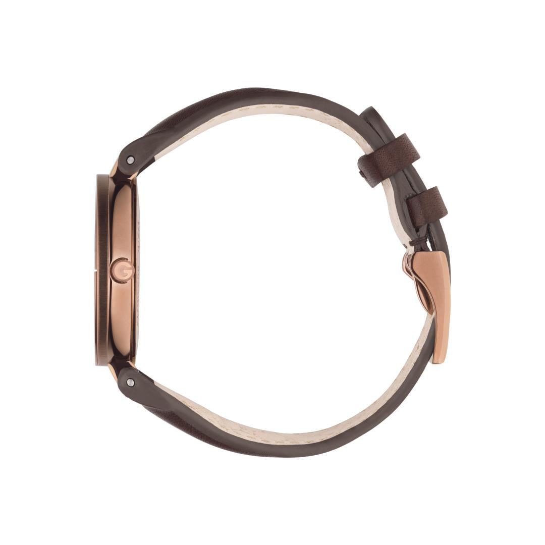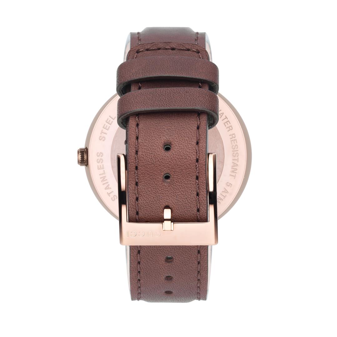 - Brown PVD case, brown sun-brushed dial, brown leather strap