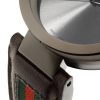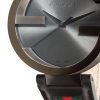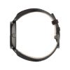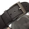- Black PVD case, anthracite sun-brushed dial, black leather strap with green-red-green web nylon