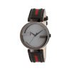 - Black PVD case, anthracite sun-brushed dial, black leather strap with green-red-green web nylon