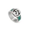 - INTERLOCKING G RING 14MM M SILVER& TURQUOISE ENAMEL