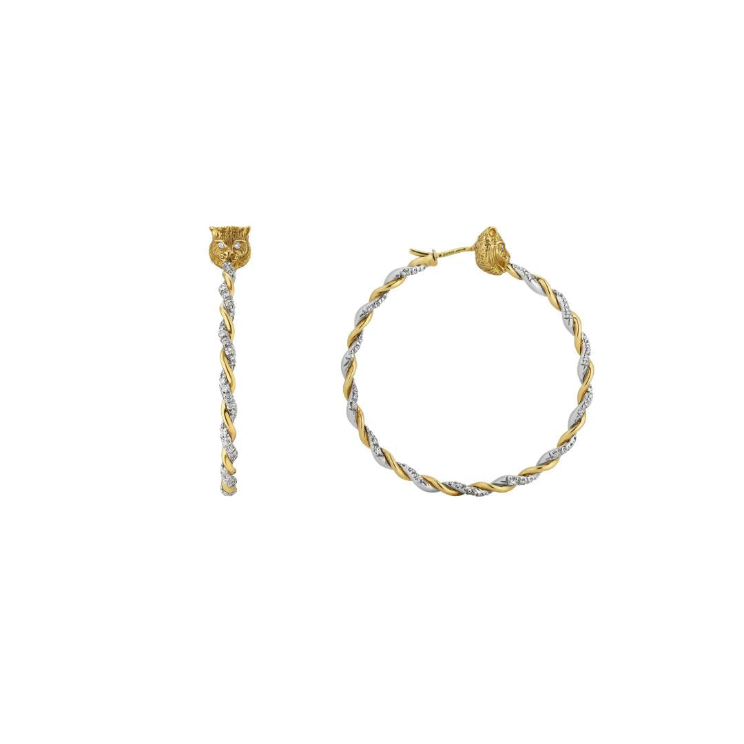 - Hoop earrings in 18kt yellow gold and diamond, total 0,62 carats, round brilliant cut, G/H, VVS