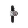 - Full paved rotating feline head case set with two rubis eyes, white mother of pearl dial, black lizard strap