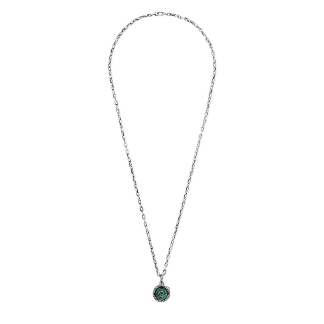 Gucci Necklace with Double G and snake motif in aged sterling silver and green resin – YBB577429001