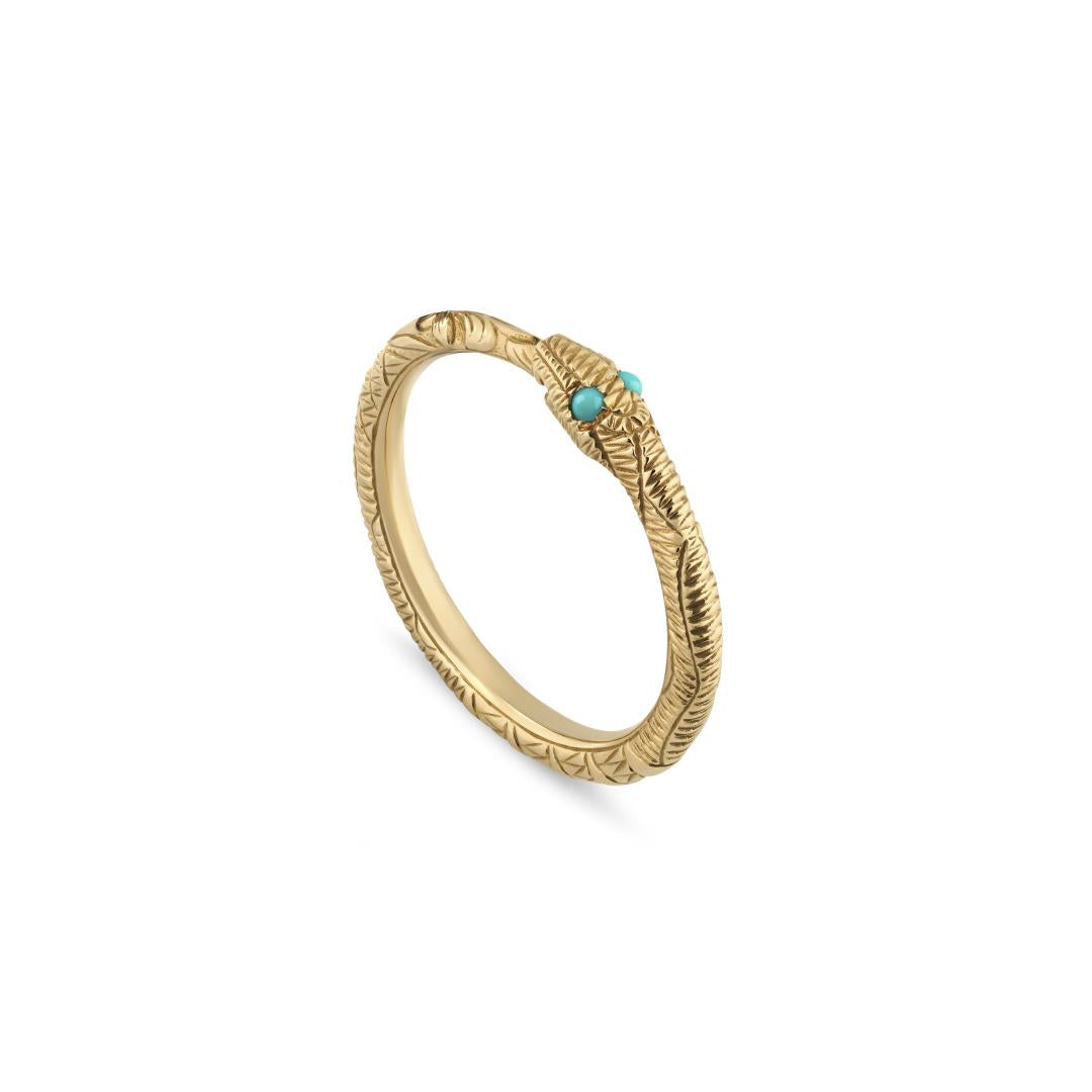 - Ring with snake motif in 18kt yellow gold and turquoise