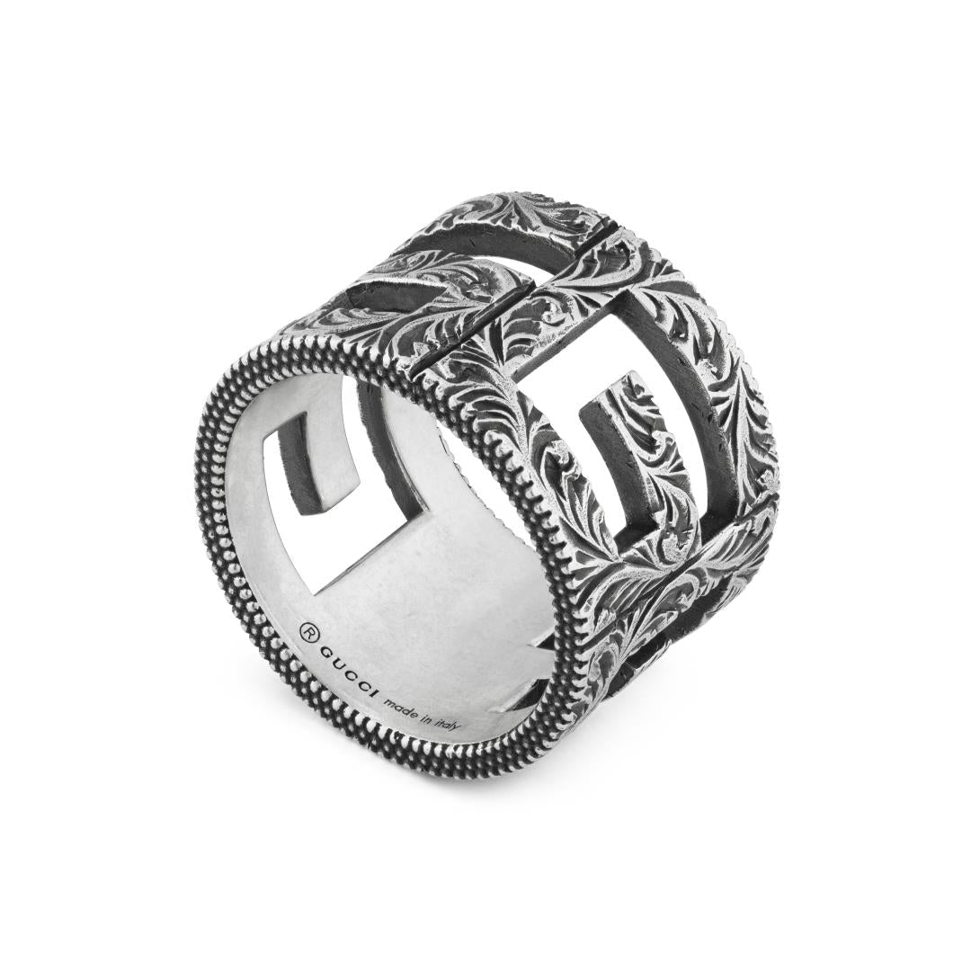 Ring with G motif in aged sterling silver, width 15mm