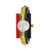 - Transparent rainbow resin case, white mother of pearl dial, transparent rainbow resin bangle with colored strass studs