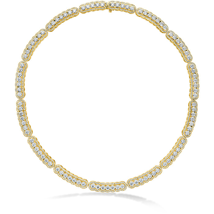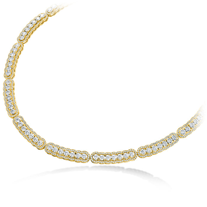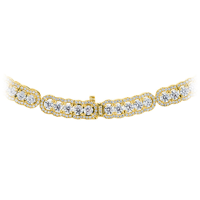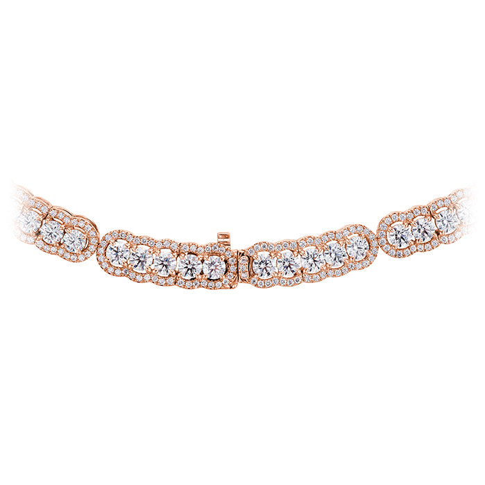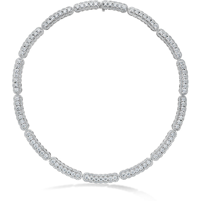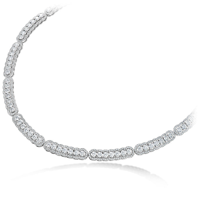 Exquisitely feminine, this line necklace features diamonds surrounded by intricate diamond halos, giving the design the look of woven diamond embroidery. The effect is a stand-out sparkle that absolutely cannot be missed.
