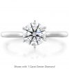 A six-prong setting accentuates the perfect shape of our round brilliant diamond. Combined with a sleek metal band for a truly classic, elegant look.
