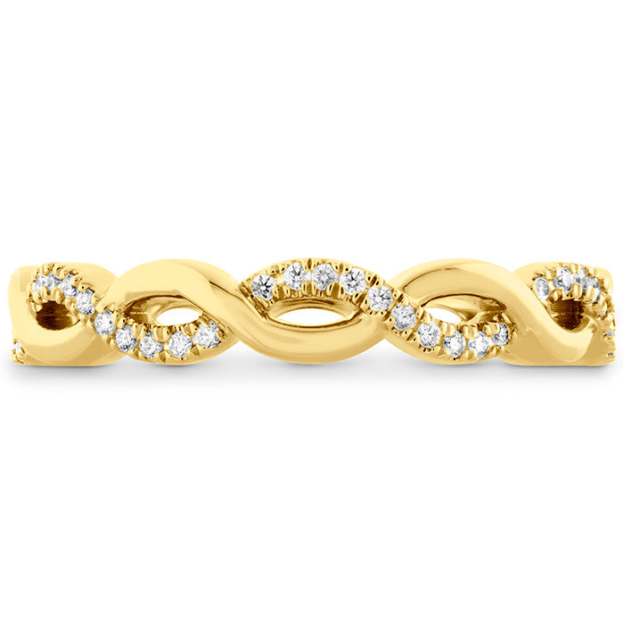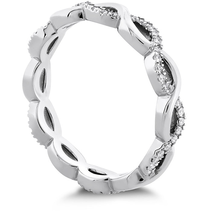 This band features intertwining vines of metal and diamonds that twist around the entirety of the band. This ring was designed as a match for our Destiny Engagement Rings, but can truly be paired with any engagement ring or worn alone.