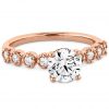Delicate milgrain detailing on the diamond-accented band of this engagement ring give the design a subtly vintage feel, while radiant round diamonds provide plenty of sparkle.