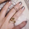 A ring that says “Be bold and go for it.” A power band in every sense of the word, this ring features a sleek metal band coupled with dazzling diamonds in a V formation. Wear it to remind yourself where you’re headed: upward and onward into the great unknown.