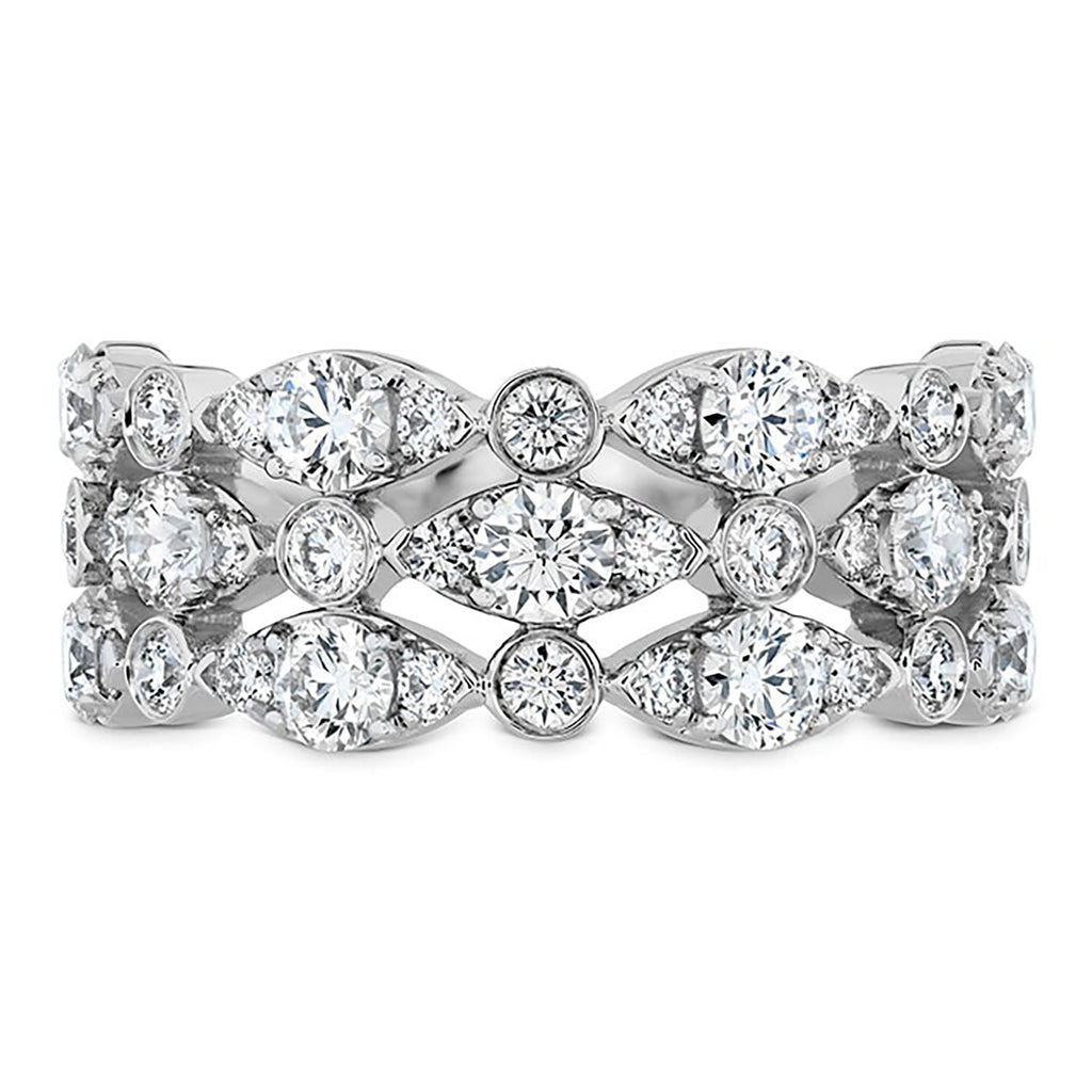 This ring truly stands up to its name; the three rows of round and marquise illusion-shaped diamonds evoke images of royalty and grace. This bold ring style is perfect for the fashion forward woman.