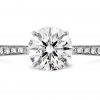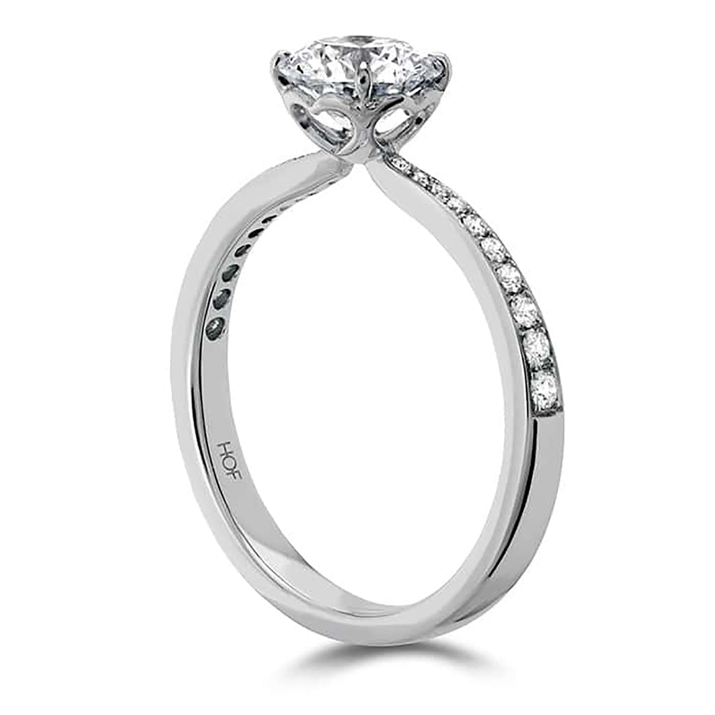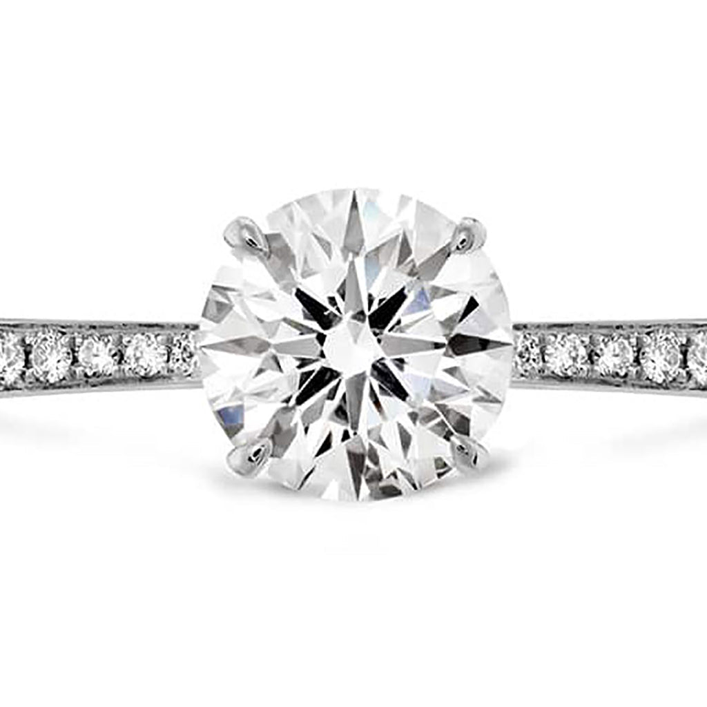 Our classic solitaire engagement ring gets a subtly different look with this design. A tapered diamond band gives the center stone a brilliant stage to sparkle on. It’s the little details that make a difference in this beauty.