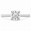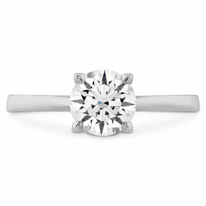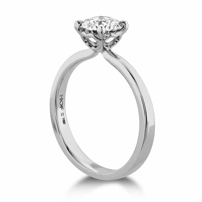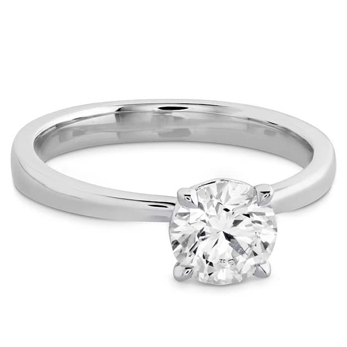 Simplicity speaks volumes. This timeless engagement ring boasts a solitaire diamond on a gorgeous metal band. The darling is in the details, though—the gallery holding up the center stone features a heart motif underneath.