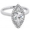 Our version of a fancy-shaped diamond, this ring features our round brilliant diamond nestled in an eye-catching marquise-shaped setting. Accent diamonds in a tight pave setting are so precisely placed and undeniably brilliant that the result is the illusion of one large, marquise-shaped center diamond.