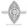 Our version of a fancy-shaped diamond, this ring features our round brilliant diamond nestled in an eye-catching marquise-shaped setting. Accent diamonds in a tight pave setting are so precisely placed and undeniably brilliant that the result is the illusion of one large, marquise-shaped center diamond.
