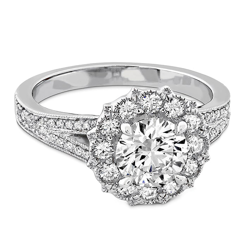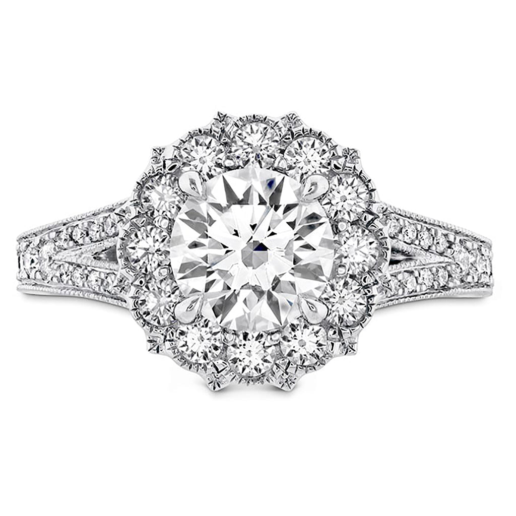 Our signature sparkle meets a vintage-inspired, expertly crafted design in the Liliana Halo Engagement Ring. A round center diamond surrounded by a halo of smaller diamonds and fine metal detailing give this ring an heirloom look, while the perfectly cut diamonds give it all-over modern sparkle.