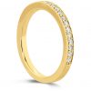 A row of perfectly cut diamonds is flanked by metal walls accented with subtle milgrain beading. The added texture highlights the natural brilliance of the diamonds, creating a bold statement that will pair well with any engagement ring or stand beautifully on its own.