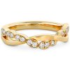 Made to look like vines of delicately twisting diamonds and metal, this ring stands out in a stack. Sits delicately on the finger and complements just about any band beautifully.
