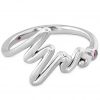 “Mrs.” is our favorite way to spell “forever.” Written in Hayley’s handwriting and punctuated with a tiny pink sapphire, this ring is a playful and whimsical addition to any stack.