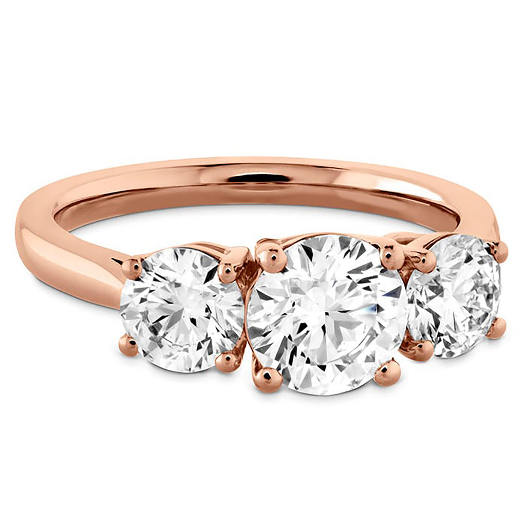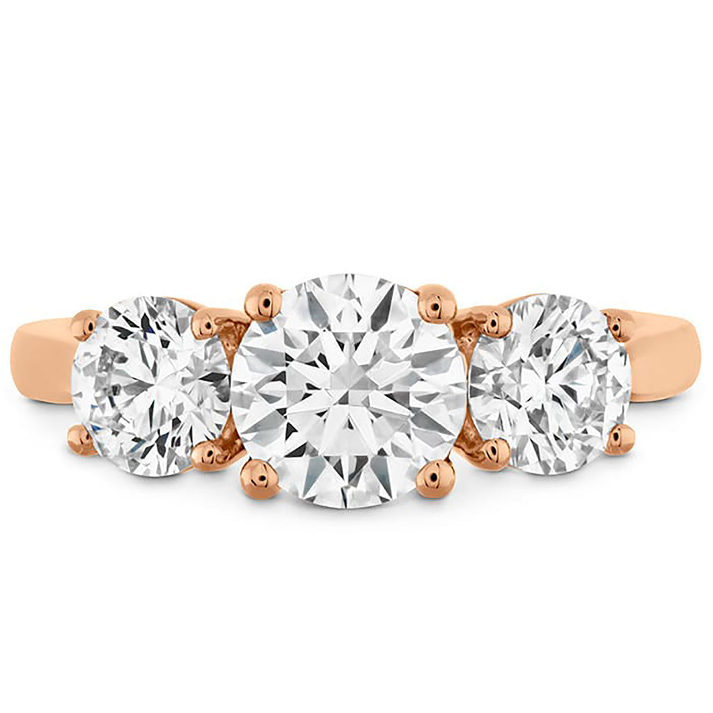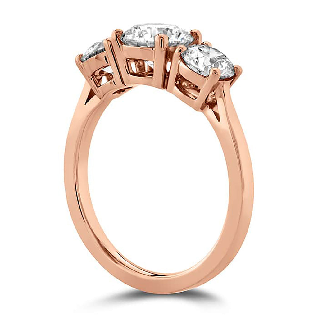 Three perfect round diamonds are perched side-by-side on this solid metal mounting. Pricing shown is for center diamond and mounting only. Pricing for accompanying side stones will vary.