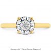 Equal parts minimalist and oh-so-romantic, this ring puts our perfectly cut diamond front and center on a sleek metal band, and was inspired by Hayley’s Sloane gown. A pink sapphire accent sparkles underneath the gallery.