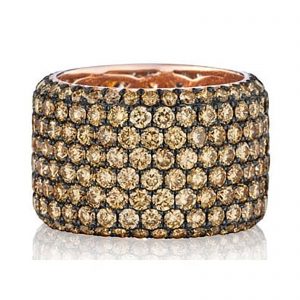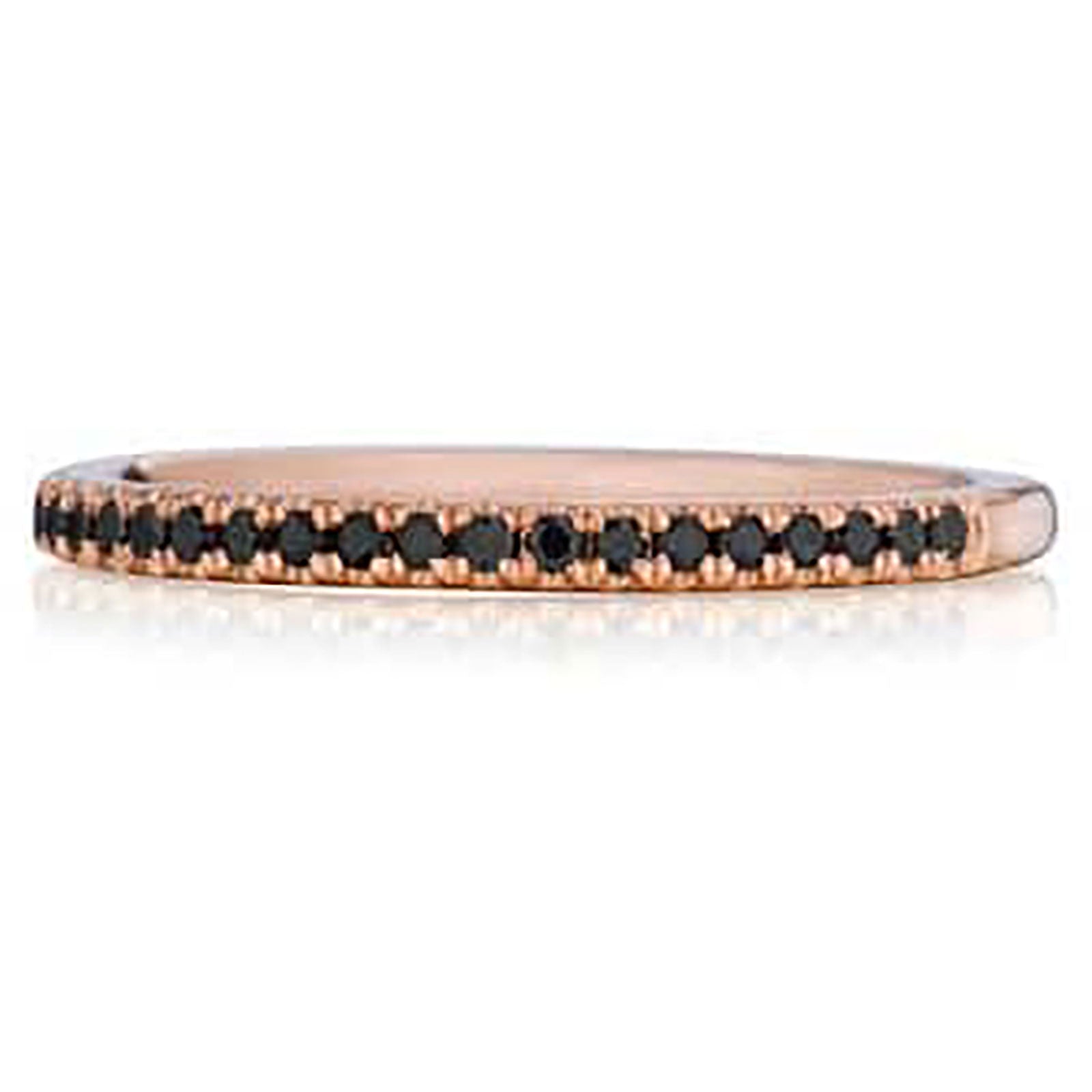 Honor the love between you and your partner with this sleek wedding band for Ladies. This modern wedding band is made of precious metals crafted to last. The 14k rose gold has been carefully polished to give it a stunning sparkle. Choose 14k rose gold and let its shine represent your passionate commitment to each other. Radiant black diamond stones catch your eye with their shine and glow. These are carved into round shapes with great care and is then kept in a secure prong setting in order to protect each stone. Commemorate the day you marry with this wedding band made to last through the ages.