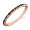 Indulge your senses with this sophisticated wedding band for Ladies. This modern wedding band is one you will cherish forever. The 18k rose gold emanates fire and brilliance. Choose 18k rose gold and let its elegant design represent your passionate commitment to each other. Shining black diamond stones impart an opulent finish to the band. These are carefully cut into round shapes with great precision and is then kept in a secure prong setting in order to protect each stone. Commemorate the day you tie the knot with this wedding band made to last through the ages.