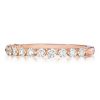Indulge your senses with this sleek wedding band for Ladies. This modern wedding band appeals to both the contemporary and classic. The 18k rose gold emanates fire and brilliance. Choose 18k rose gold and let its elegant design represent your long lasting commitment to each other. Shining white diamond stones catch your eye with their shine and glow. These are carved into round shapes with great care and is then kept in a secure prong setting in a practical and fashionable way. Commemorate the day you marry with this wedding band made to last through the ages.