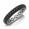 Express your commitment and love with this elegant wedding band for Ladies. This modern wedding band is made of precious metals crafted to last. The 18k white gold shines brightly. Choose 18k white gold and let its elegant design showcase your determined commitment to each other. Shining black diamond stones embellish the band in a breathtaking manner. These are cut into round shapes with great care and then rests on a secure pave setting in order to protect each stone. Celebrate the day you marry with this wedding band made to last through the ages.