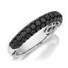 Express your commitment and love with this luxurious wedding band for Ladies. This modern wedding band is made of precious metals crafted to last. The platinum shines brightly. Choose platinum and allow its shine represent your long lasting commitment to each other. Shining black diamond stones impart an opulent finish to the band. These are carefully cut into round shapes with great detail and is then kept in a secure pave setting in order to protect each stone. Commemorate the day you tie the knot with this wedding band made to last through the ages.
