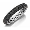 Indulge your senses with this sleek wedding band for Ladies. This modern wedding band is made of precious metals crafted to last. The platinum has been expertly polished to give it an immaculate sparkle. Choose platinum and let its elegant design represent your passionate commitment to each other. Luminous black diamond stones embellish the band in a breathtaking manner. These are cut into round shapes with great care and is then kept in a secure pave setting in a practical and fashionable way. Celebrate the day you exchange vows with this gorgeous wedding band.