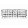 Honor the love between you and your partner with this sleek wedding band for Ladies. This vintage wedding band appeals to both the contemporary and classic. The platinum emanates fire and brilliance. Shining white diamond stones embellish the band in a breathtaking manner. These are carved into round shapes with great care and is then kept in a durable prong setting in a practical and fashionable way.