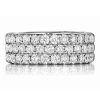 Commemorate your love with this sleek wedding band for Ladies. This vintage wedding band appeals to both the contemporary and classic. The platinum emanates fire and brilliance. Luminous white diamond stones catch your eye with their shine and glow. These are cut into round shapes with unparalleled detail and is then kept in a secure prong setting in a practical and fashionable way.